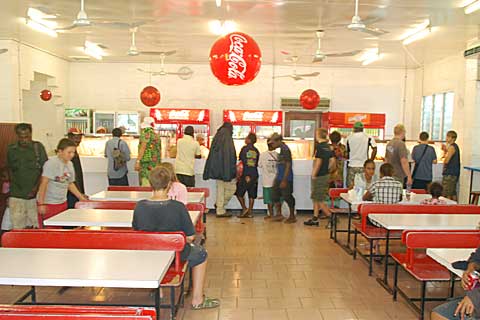 Links Kimbe Food Court: een goedkope en goede eetgelegenheid.